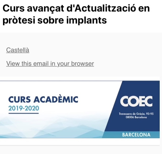 En el Col·legi Oficial d’Odontòlegs i Estomatòlegs de Catalunya (COEC), se va a impartir un curso anual teórico-práctico sobre prótesis sobre implantes, por los Dres. Alex Moyano y Jordi Ortega.